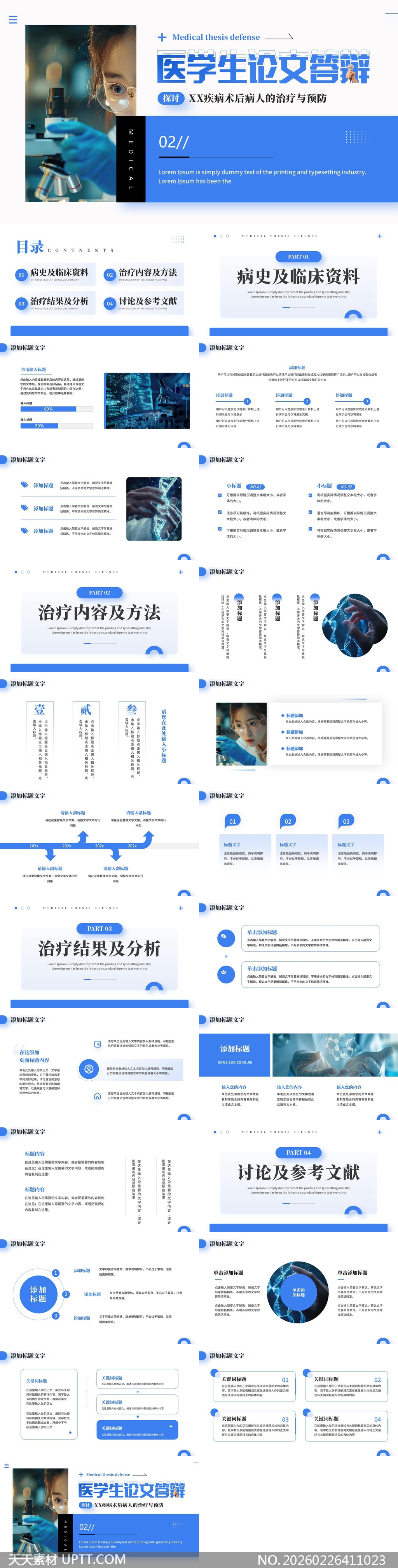 本模板采用沉稳蓝调科技风格,融合显微镜、DNA链、医疗手部特写等专业视觉元素,营造严谨学术氛围;划分为病史资料、治疗方案、结果分析与参考文献四大模块,适配临床治疗数据呈现与机制阐释,适用于医学研究生论文答辩、课题汇报或学术沙龙展示,兼顾专业性与现代感,提升演示逻辑性与视觉说服力。【 素材唯一编号 20260226411023 】,简约类蓝色风格PPTX格式素材下载,文件格式为.PPTX,下载完成后的文件为一个压缩包,素材压缩包大小13.39 MB,请解压后用相应软件打开。