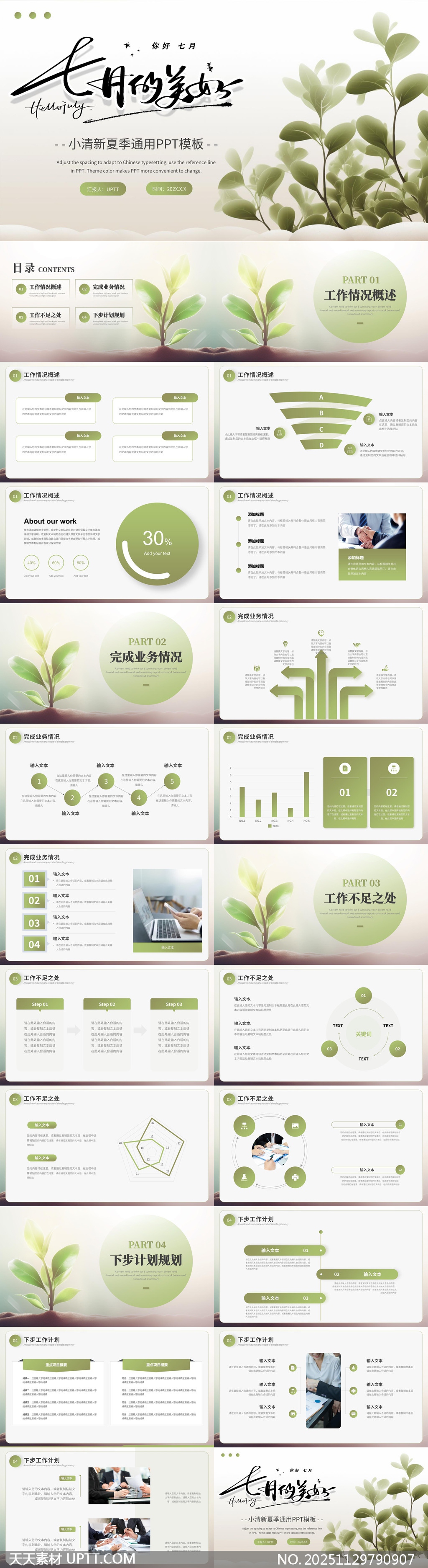本模板以清新自然的绿植元素为设计灵感,融合柔和色调与简约布局,营造出舒缓雅致的视觉氛围,适用于职场汇报、季度总结、团队复盘等场景。【 素材唯一编号 20251129790907 】,工作总结类绿色风格PPTX格式素材下载,文件格式为.PPTX,下载完成后的文件为一个压缩包,素材压缩包大小20.41 MB,请解压后用相应软件打开。
