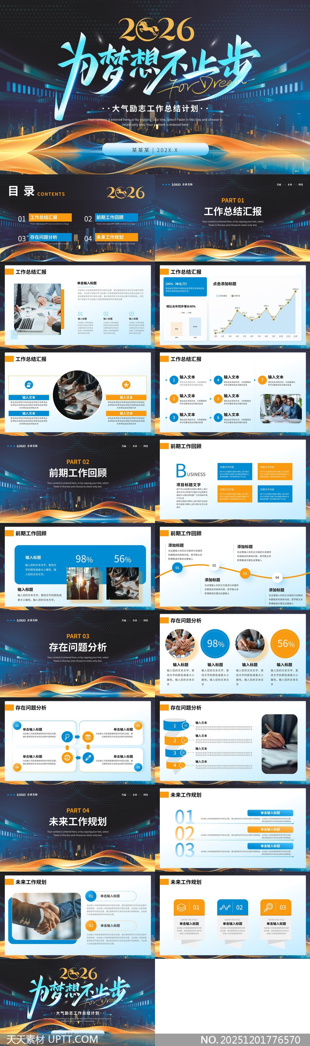 该PPT模板以“2026为梦想不止步”为主题,采用科技感十足的深蓝与金色渐变设计,融合城市夜景与动态线条元素,整体视觉大气磅礴,充满未来感与励志氛围。包含工作总结、前期回顾、问题分析及未来规划四大模块,适用于年度总结、团队汇报、企业策划等正式场合,助力用户高效传达核心内容,激发团队斗志与目标感。【 素材唯一编号 20251201776570 】,工作总结类蓝色风格PPTX格式素材下载,文件格式为.PPTX,下载完成后的文件为一个压缩包,素材压缩包大小5.88 MB,请解压后用相应软件打开。