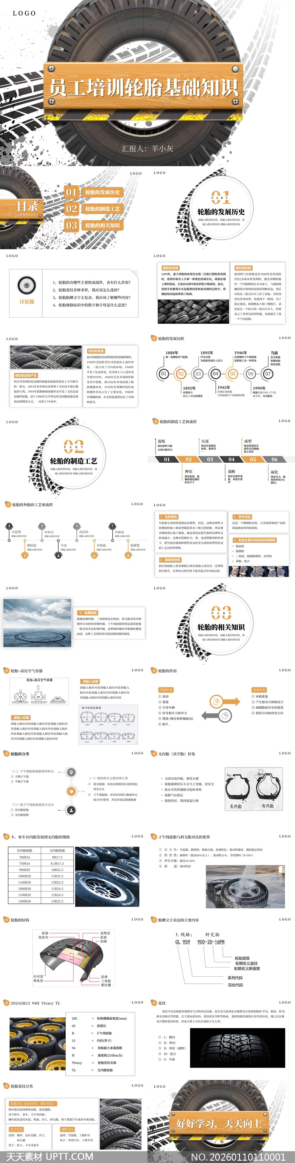 本PPT模板专为汽车、物流及维修行业员工培训打造,采用工业风视觉设计,融合真实轮胎特写与清晰结构图解,系统梳理发展史、制造工艺与规格参数等核心知识,适用于新员工入职培训、技能考核或客户产品说明会,助您高效传递专业内容,提升培训转化率。【 素材唯一编号 20260110110001 】,企业培训类黄色风格PPTX格式素材下载,文件格式为.PPTX,下载完成后的文件为一个压缩包,素材压缩包大小17.85 MB,请解压后用相应软件打开。