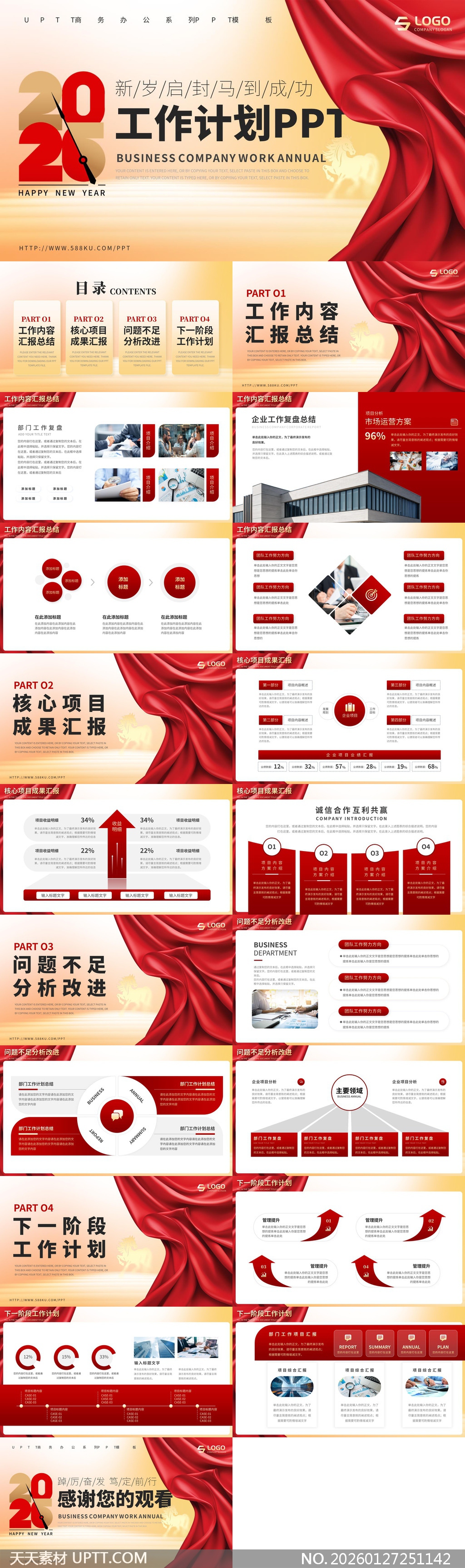 本PPT模板以喜庆红金配色搭配丝绒质感背景与“2025”创意时钟设计,分为工作复盘、成果展示、问题剖析与未来规划四大模块,适配年度总结、季度汇报、项目复盘及新年工作部署等场景,助力企业高效呈现专业、大气、富有仪式感的年度工作汇报。【 素材唯一编号 20260127251142 】,述职汇报类红色风格PPTX格式素材下载,文件格式为.PPTX,下载完成后的文件为一个压缩包,素材压缩包大小5.37 MB,请解压后用相应软件打开。