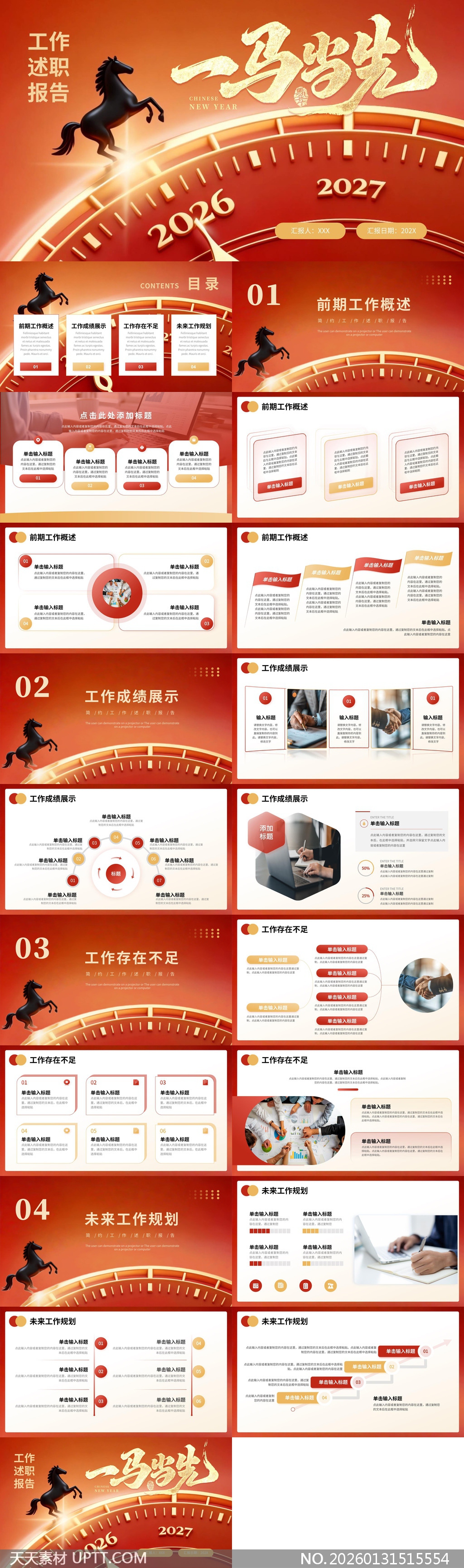 马年 述职报告 工作总结模板 年度汇报PPT 新春主题PPT
