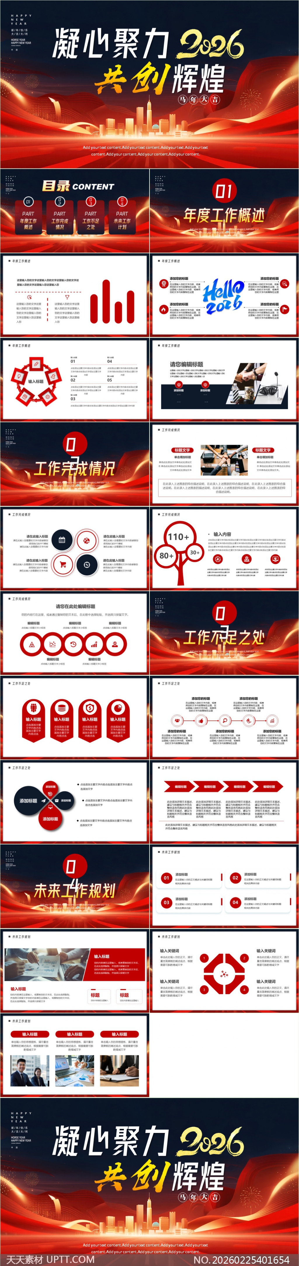 本模板内含年度概述、工作完成、不足分析及未来规划四大核心模块,适用于企事业单位年终总结大会、部门述职汇报、战略规划发布会等正式场合,助力高效传达成果与愿景,彰显团队凝聚力与文化自信。【 素材唯一编号 20260225401654 】,述职汇报类红色风格PPTX格式素材下载,文件格式为.PPTX,下载完成后的文件为一个压缩包,素材压缩包大小8.22 MB,请解压后用相应软件打开。