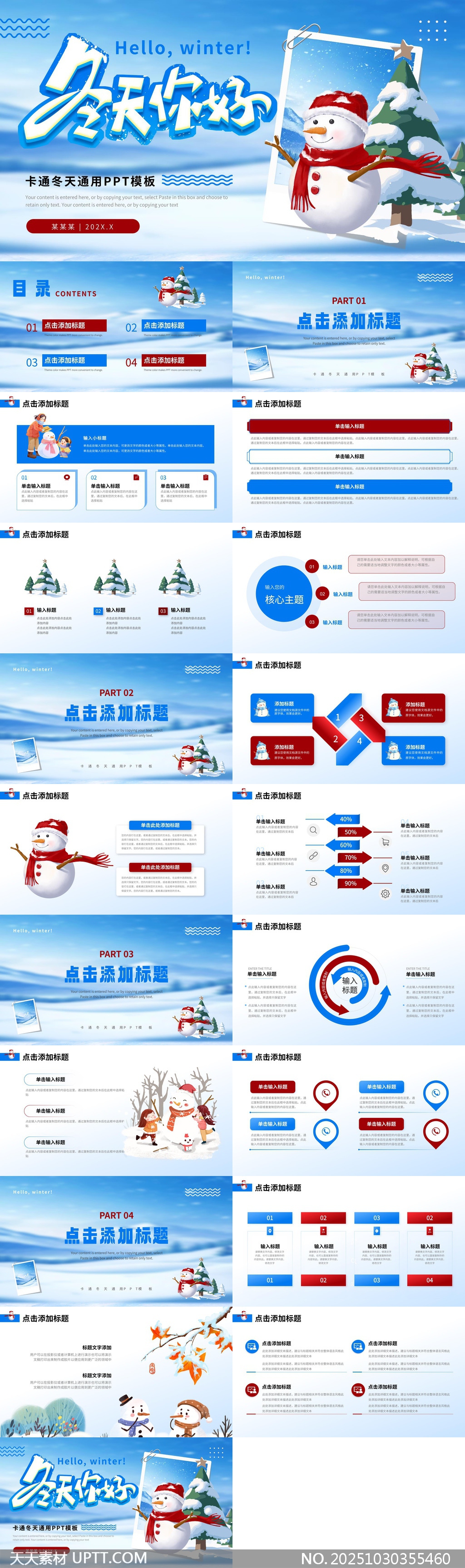雪人 冬季 冬天PPT模板 卡通雪人PPT 冬季主题PPT 冬季通用模板