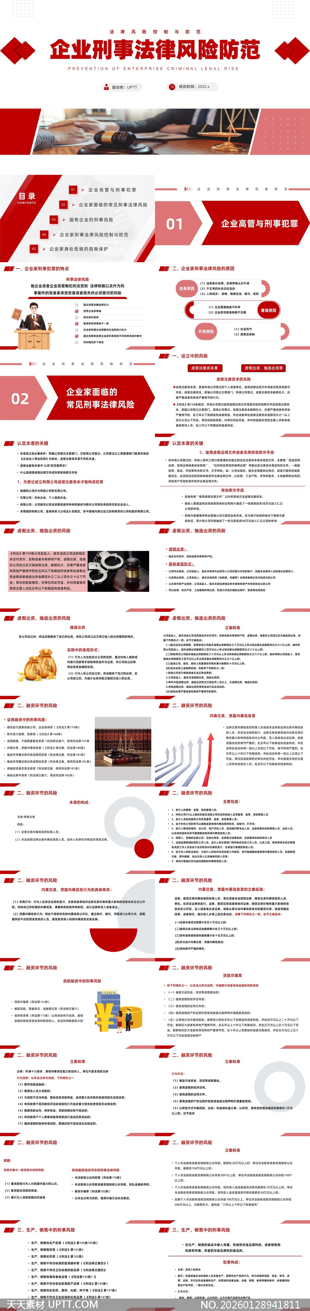 本PPT模板内容紧扣企业高管及企业家高频涉刑风险点,系统梳理虚假出资、内幕交易、融资诈骗、生产销售伪劣商品等典型罪名构成要件、实务认定标准与防控策略,并嵌入真实法条依据(如《刑法》第159、160、180条等)与典型案例解析;适用于律所合规培训、企业内训、商学院课程及政府普法讲座等场景,助力用户高效开展刑事风险预警与合规体系建设。【 素材唯一编号 20260128941811 】,党建类红色风格PPTX格式素材下载,文件格式为.PPTX,下载完成后的文件为一个压缩包,素材压缩包大小18.13 MB,请解压后用相应软件打开。