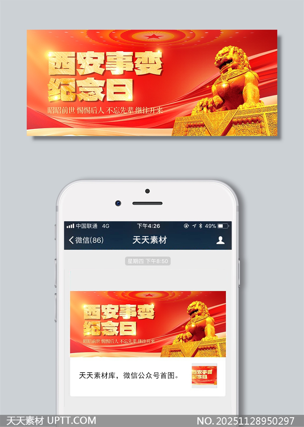 本作品以庄重恢弘的红色为主调,搭配金色石狮与光辉元素,彰显西安事变纪念日的庄严历史感与时代精神,设计风格大气磅礴,视觉冲击力强,适用于微信公众号首图、宣传海报等场景,既能突出主题又便于传播,是弘扬爱国主义教育、纪念历史事件的理想素材选择。【 素材唯一编号 20251128950297 】,海报类红色风格PSD格式素材下载,文件格式为.PSD,下载完成后的文件为一个压缩包,素材压缩包大小13.08 MB,请解压后用相应软件打开。