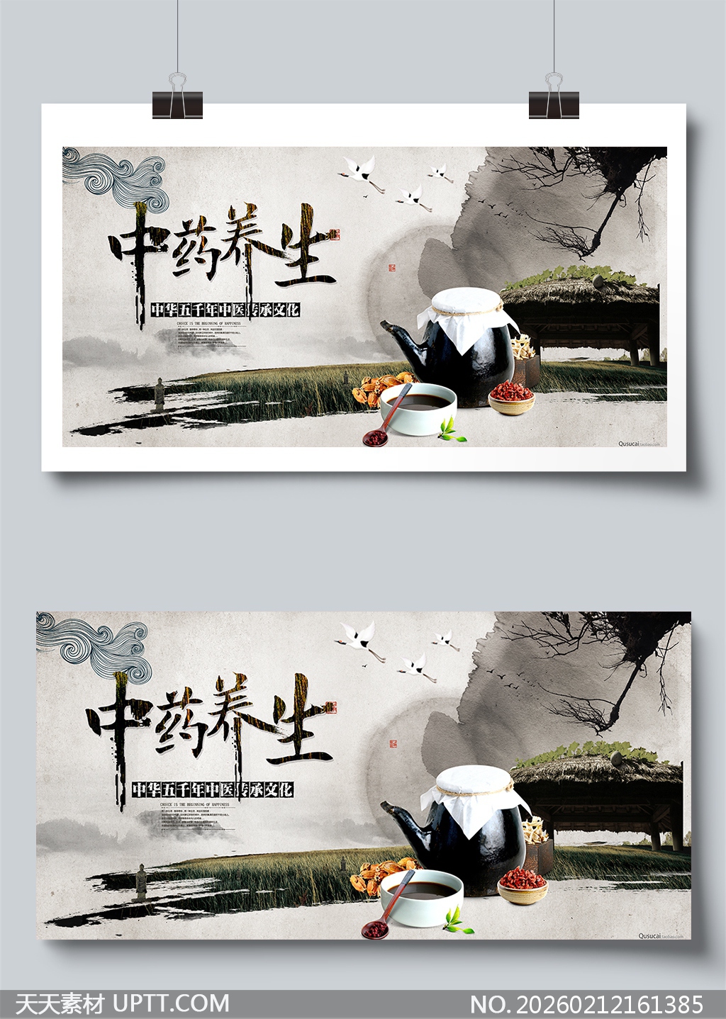 本展板以水墨晕染、飞鹤掠影与古朴药具为视觉核心,融合书法字体与留白意境,营造出淡雅悠远的东方美学氛围;画面中黑陶药壶、枸杞红枣等药材细节真实精致,背景田园小屋与远山呼应,彰显中医“天人合一”的养生哲学;适用于中医药文化馆、社区健康讲座、学校传统文化教育及企业 wellness 活动等场景,兼具艺术性与传播力,是弘扬中华传统医学智慧的理想视觉载体。【 素材唯一编号 20260212161385 】,展板类黑白灰风格PSD格式素材下载,文件格式为.PSD,下载完成后的文件为一个压缩包,素材压缩包大小190.55 MB,请解压后用相应软件打开。