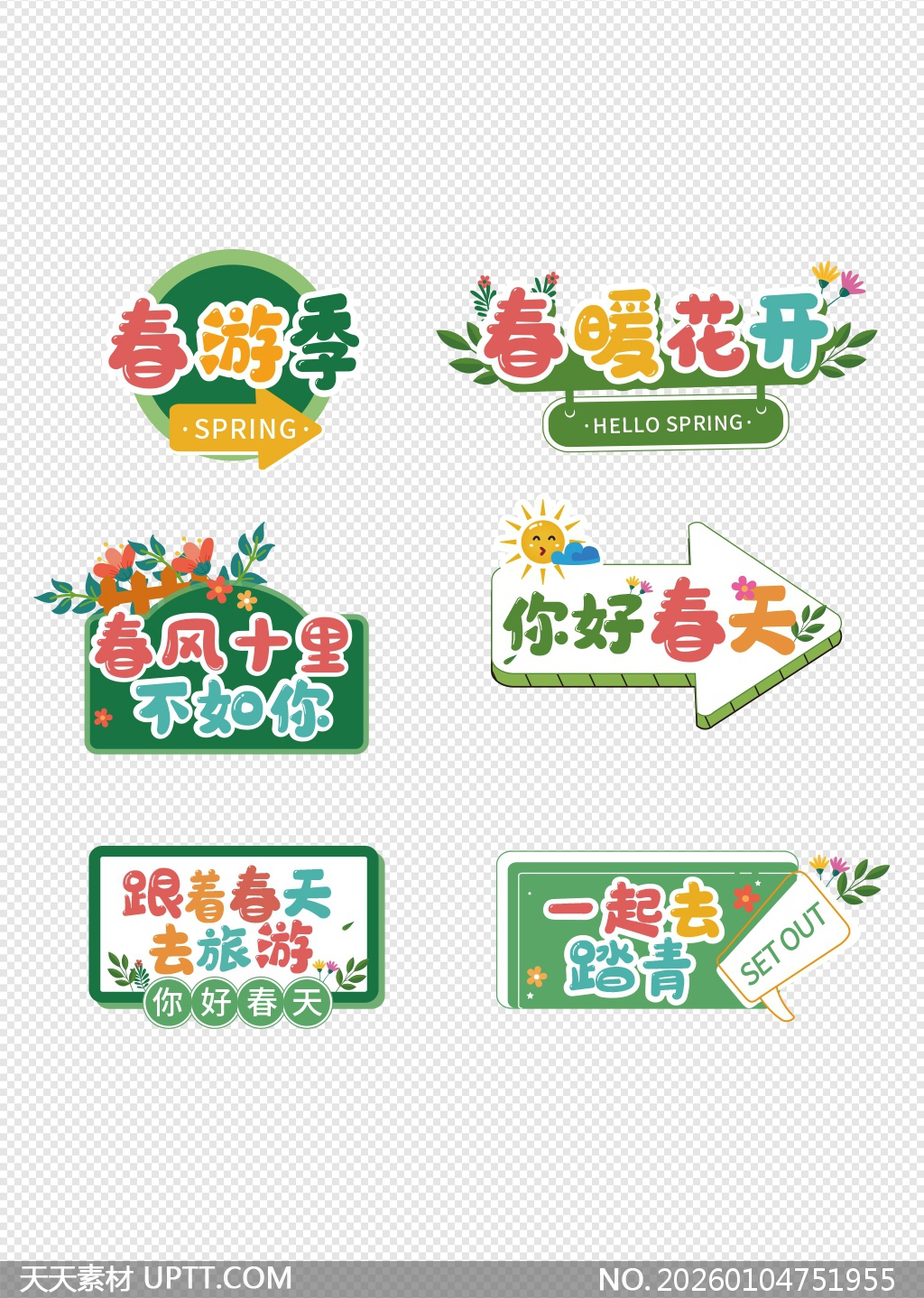 这组春日主题手举牌设计以清新绿意与明媚色彩为主调,融入箭头、花朵、太阳等活泼元素,字体圆润可爱充满童趣,完美契合踏青出游的轻松氛围;适用于春季户外活动、亲子研学、品牌快闪店打卡点或社交媒体宣传,能瞬间点燃用户参与热情,是打造高互动性视觉场景的理想素材,让每一次春游都充满仪式感与传播力。【 素材唯一编号 20260104751955 】,手举牌类绿色风格AI格式素材下载,文件格式为.AI,下载完成后的文件为一个压缩包,素材压缩包大小2.23 MB,请解压后用相应软件打开。