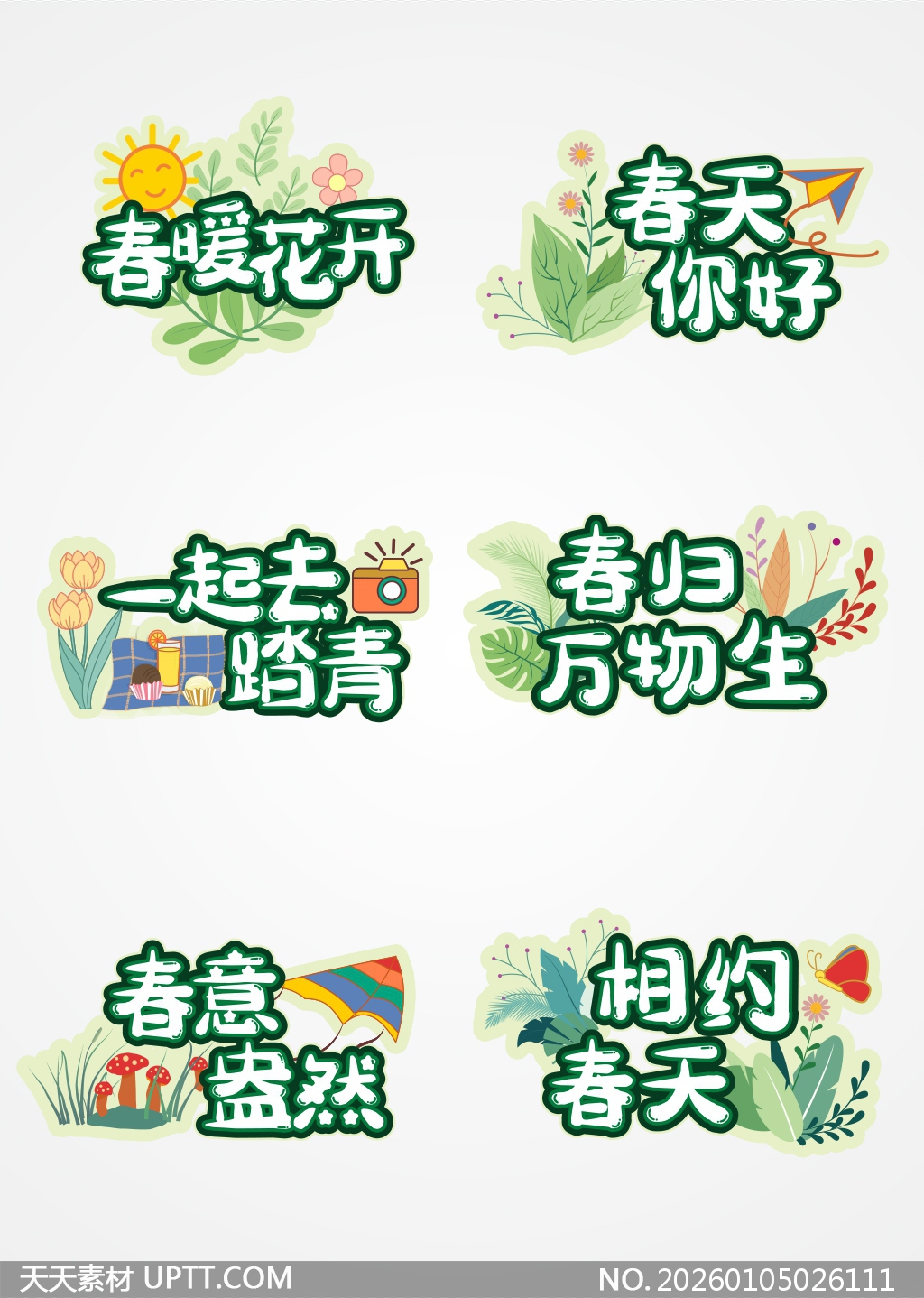这套春日主题手举牌设计以清新治愈的插画风格呈现,采用圆润字体搭配绿叶、花朵、风筝、野餐垫等元素,色彩明快充满生机,完美契合户外踏青、闺蜜聚会、亲子郊游等场景,无论是拍照打卡还是活动氛围营造都能瞬间提升画面活力与仪式感,是春季社交媒体分享和线下活动布置的高颜值实用素材。【 素材唯一编号 20260105026111 】,手举牌类绿色风格CDR格式素材下载,文件格式为.CDR,下载完成后的文件为一个压缩包,素材压缩包大小1.99 MB,请解压后用相应软件打开。