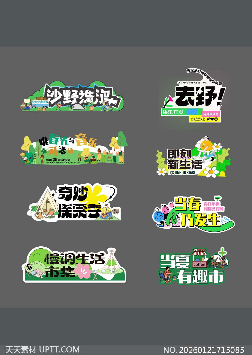 这组手举牌设计巧妙融合春日露营与音乐节元素,采用清新治愈的插画风格和活泼撞色搭配,搭配“去野!”“当春乃发生”等年轻化标语,充满户外自由气息;适用于音乐节应援、市集打卡、品牌快闪活动或社交媒体互动,既能点燃现场氛围,又能作为高颜值拍照道具,轻松提升活动视觉吸引力与用户参与感。【 素材唯一编号 20260121715085 】,手举牌类绿色风格AI格式素材下载,文件格式为.AI,下载完成后的文件为一个压缩包,素材压缩包大小1.56 MB,请解压后用相应软件打开。