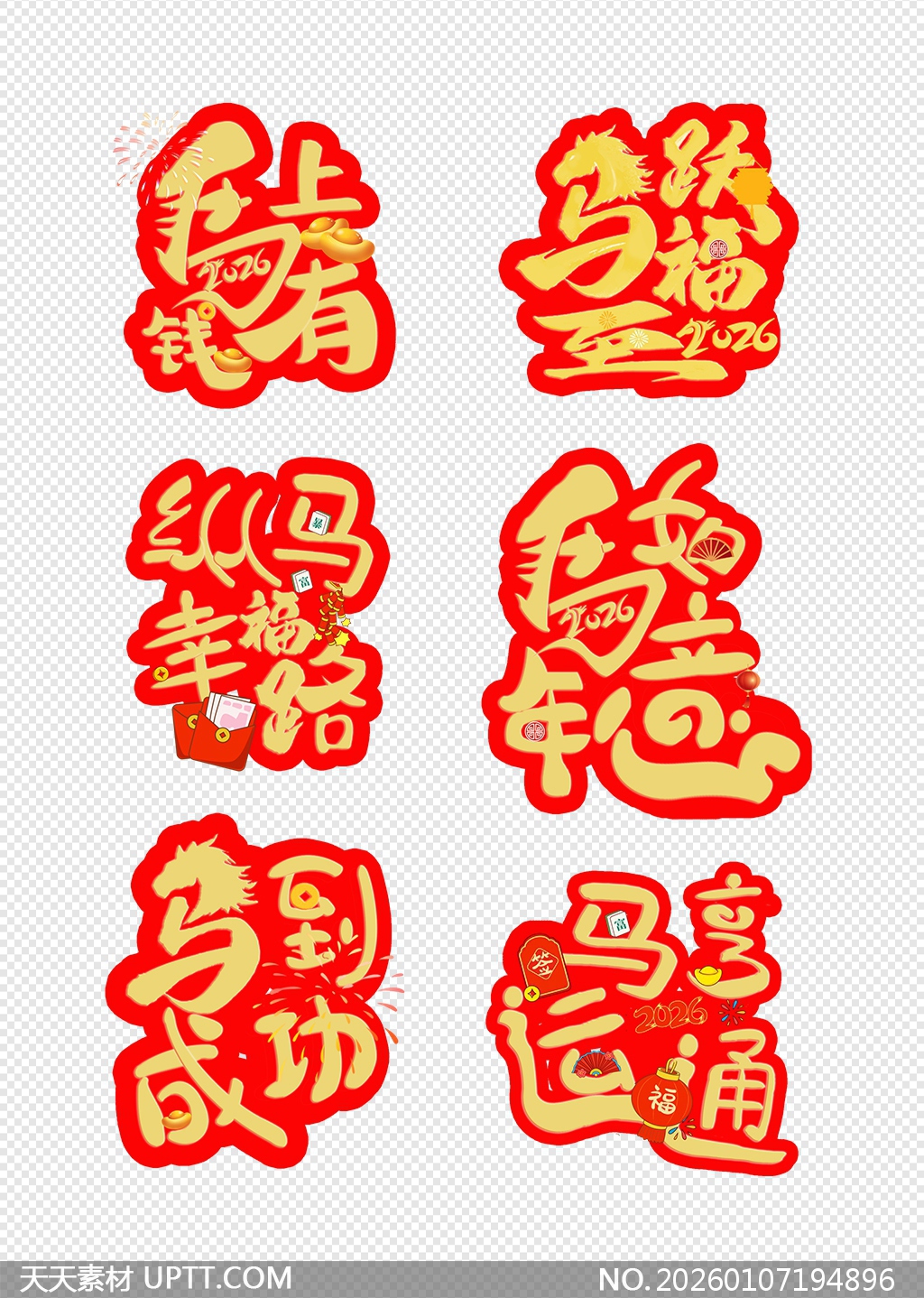 马年 艺术字 喜庆祝福 马到成功 马上有钱 马运亨通 纵马幸福 马跃福至 马年吉祥 马年元素