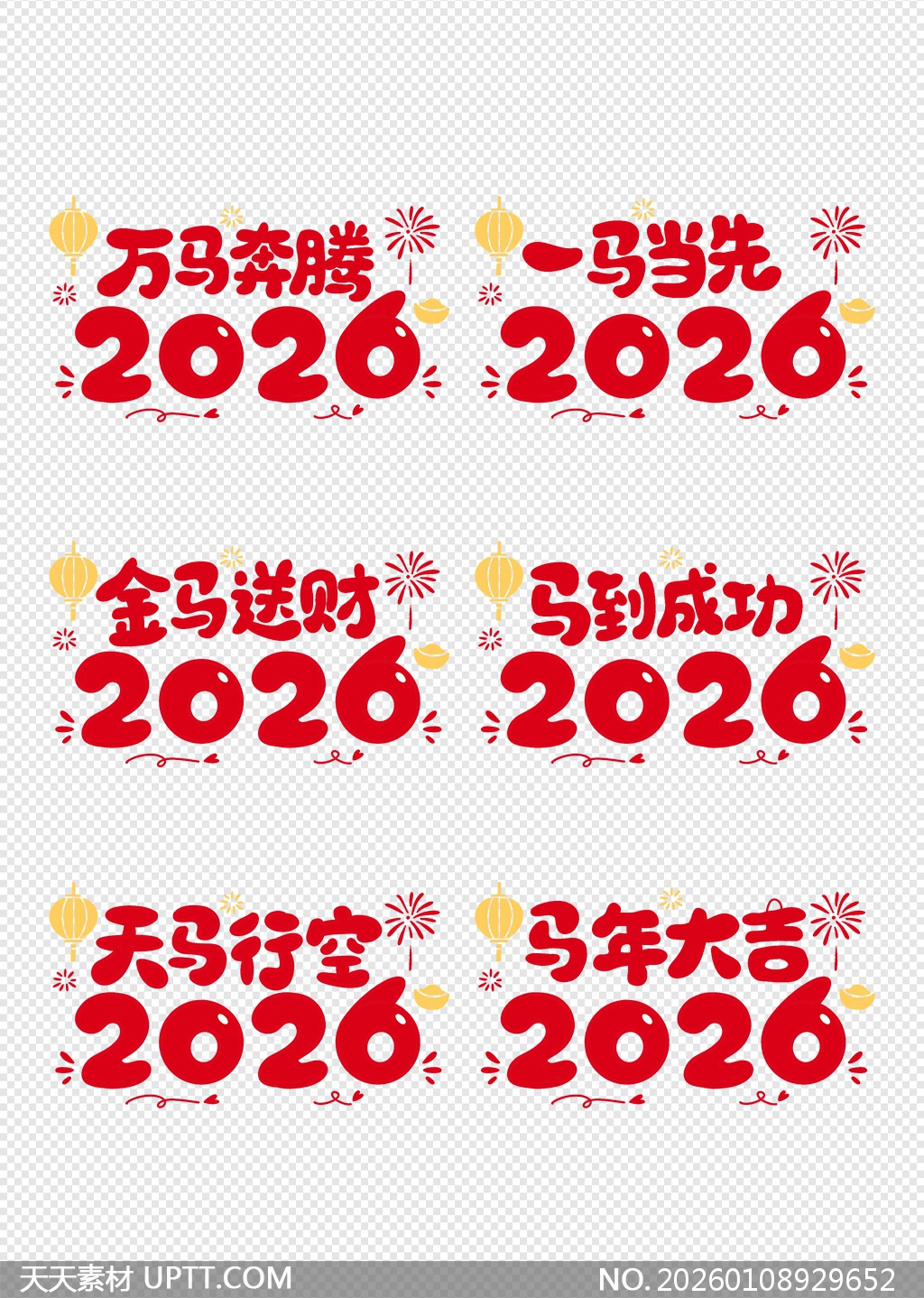 本组2026新年艺术字设计以“马”为主题,融合金元宝、灯笼、烟花等吉祥元素,采用喜庆红金配色与圆润字体,视觉饱满充满节日氛围;适用于企业年会海报、社交媒体贺图、店铺橱窗装饰及PPT封面等场景,助力传递新春祝福与美好寓意,为各类节庆活动增添热闹与好运气息。【 素材唯一编号 20260108929652 】,艺术字类红色风格PSD格式素材下载,文件格式为.PSD,下载完成后的文件为一个压缩包,素材压缩包大小2.14 MB,请解压后用相应软件打开。