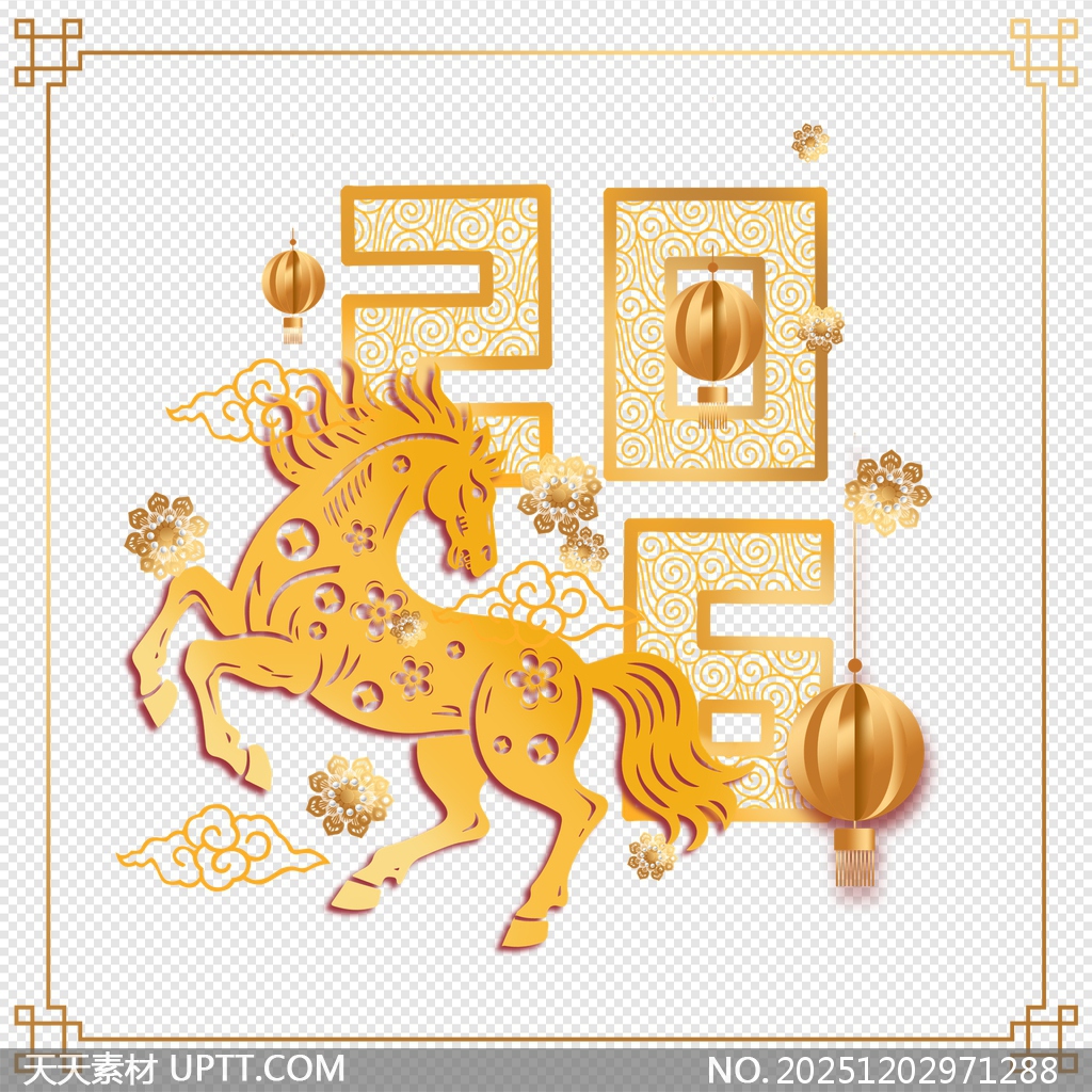 这款2026新年主题免抠素材以金色骏马为核心,搭配祥云、灯笼与数字“2026”,采用镂空剪纸风格呈现浓郁传统年味,透明背景便于灵活叠加于海报、PPT、电商 banner 或节日贺卡中,是营造喜庆氛围、突出生肖主题的视觉利器,适用于各类节庆宣传与设计场景。【 素材唯一编号 20251202971288 】,剪纸类黄色风格PSD格式素材下载,文件格式为.PSD,下载完成后的文件为一个压缩包,素材压缩包大小6.5 MB,请解压后用相应软件打开。