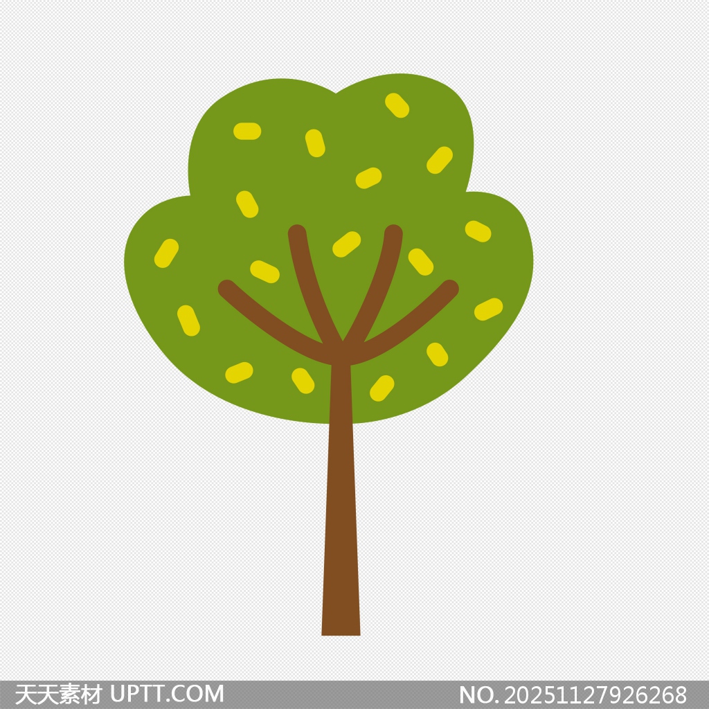 这是一棵风格简洁可爱的绿色卡通大树插画,采用扁平化设计,树冠饱满圆润,点缀黄色小点模拟阳光斑驳效果,整体色彩清新自然,视觉感强。免抠透明背景,适用于儿童绘本、教育课件、环保主题海报、PPT装饰、网页图标及各类创意设计场景,轻松提升画面活泼度与亲和力,是平面设计中理想的装饰元素。【 素材唯一编号 20251127926268 】,卡通类绿色风格PNG格式素材下载,文件格式为.PNG,下载完成后的文件为一个压缩包,素材压缩包大小119.17 KB,请解压后用相应软件打开。
