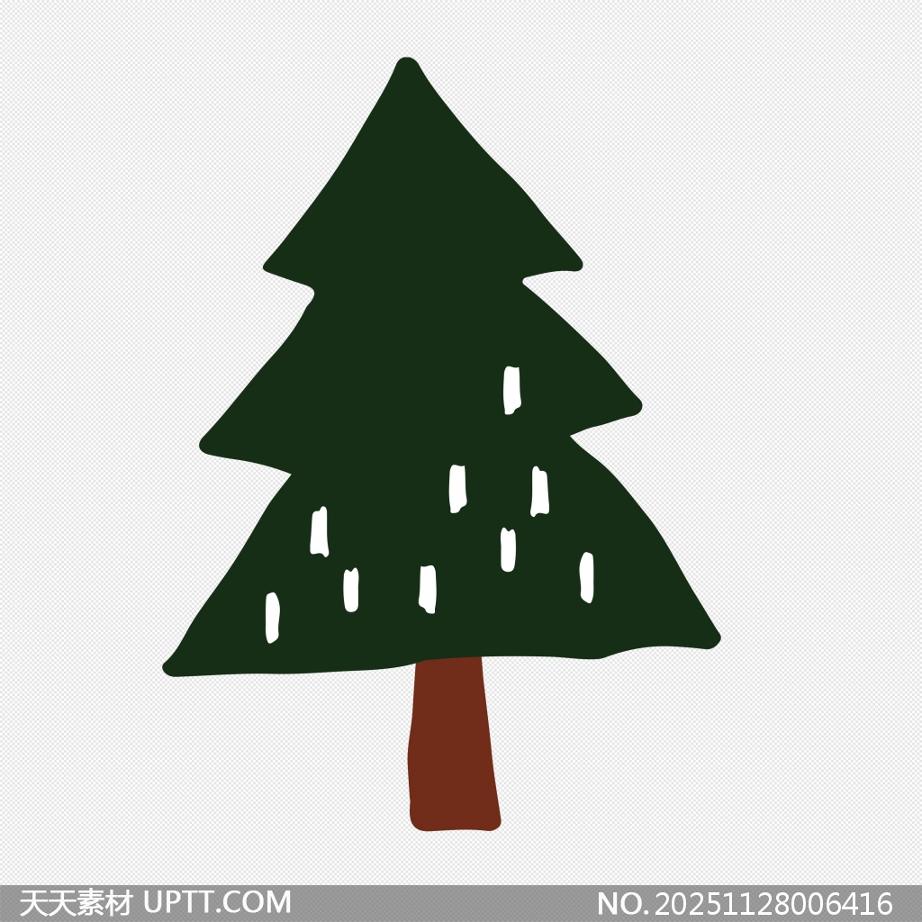 这是一幅风格简约的手绘圣诞树插画,采用清新绿色调搭配棕色树干,整体线条流畅自然,富有童趣与节日氛围。画面中点缀的白色斑点巧妙模拟积雪效果,营造出冬日雪景的温馨感,免抠设计便于快速融入各类设计项目。适用于节日海报、贺卡、PPT装饰、社交媒体配图及儿童主题素材等场景,轻松提升作品的视觉表现力与节日气息。【 素材唯一编号 20251128006416 】,卡通类绿色风格PNG格式素材下载,文件格式为.PNG,下载完成后的文件为一个压缩包,素材压缩包大小83.15 KB,请解压后用相应软件打开。