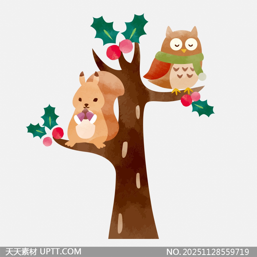 这组卡通风格的插画元素以温馨可爱的松鼠和猫头鹰为主角,搭配圣诞树与冬青果实,整体色调柔和,充满节日氛围,采用免抠设计便于快速应用。画面中松鼠手捧坚果,猫头鹰戴围巾闭眼休憩,生动展现冬日静谧场景,适合用于节日贺卡、儿童绘本、海报设计及社交媒体装饰等创意项目,为作品增添童趣与温暖感。【 素材唯一编号 20251128559719 】,卡通类彩色风格PNG格式素材下载,文件格式为.PNG,下载完成后的文件为一个压缩包,素材压缩包大小918.97 KB,请解压后用相应软件打开。