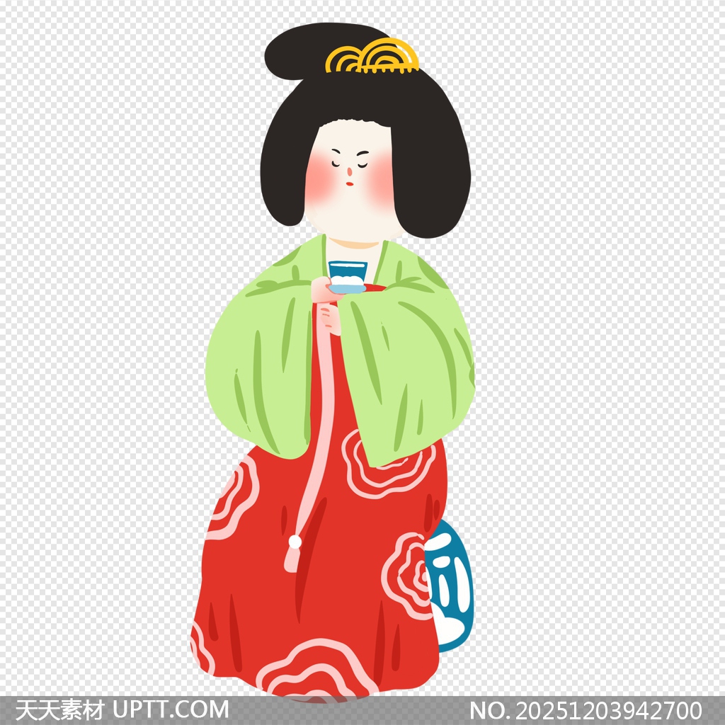 这款插画以清新可爱的Q版风格还原唐代仕女风韵,身着红绿撞色华服,搭配精致发饰与团扇,线条柔和、色彩明快,极具视觉吸引力;免抠透明背景设计方便直接拖入PPT、海报、文创包装或国潮电商页面,轻松提升设计古典韵味与文化格调,是打造节日主题、教育课件或品牌IP的优质视觉元素。【 素材唯一编号 20251203942700 】,插画类红色风格PSD格式素材下载,文件格式为.PSD,下载完成后的文件为一个压缩包,素材压缩包大小1.01 MB,请解压后用相应软件打开。