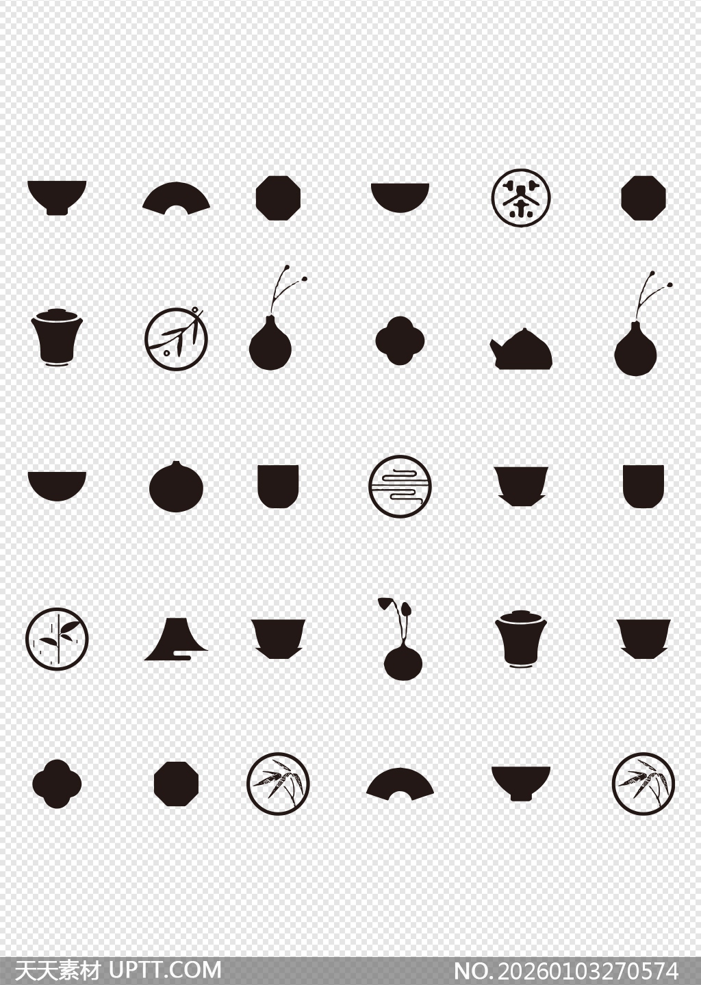 本套中式茶道元素素材以简约剪影风格呈现,融合竹叶、云纹、茶盏、茶壶等经典意象,线条凝练古朴,意境清雅悠远,适用于茶文化宣传、品牌包装、PPT演示、海报设计及文创产品装饰,轻松营造东方禅意氛围,为视觉设计注入传统美学韵味与现代设计感,是打造高格调中式主题项目的理想图形资源。【 素材唯一编号 20260103270574 】,中国风类黑白灰风格AI格式素材下载,文件格式为.AI,下载完成后的文件为一个压缩包,素材压缩包大小489.09 KB,请解压后用相应软件打开。