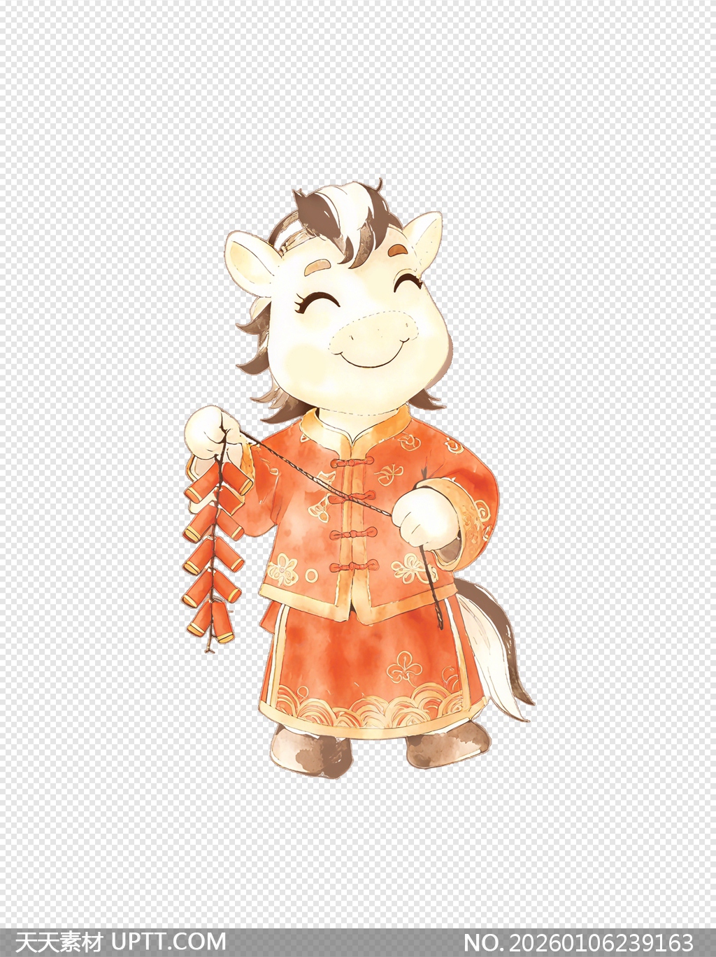 这款水彩风格的卡通小马插画身着喜庆唐装,手持传统鞭炮,笑容满面洋溢节日氛围,采用免抠透明背景设计,方便直接融入各类视觉项目;适用于春节主题海报、贺卡、电商Banner、PPT装饰及儿童教育素材,为您的设计增添萌趣与年味,是营造欢乐中国风场景的理想元素。【 素材唯一编号 20260106239163 】,卡通类红色风格PSD格式素材下载,文件格式为.PSD,下载完成后的文件为一个压缩包,素材压缩包大小45.21 MB,请解压后用相应软件打开。