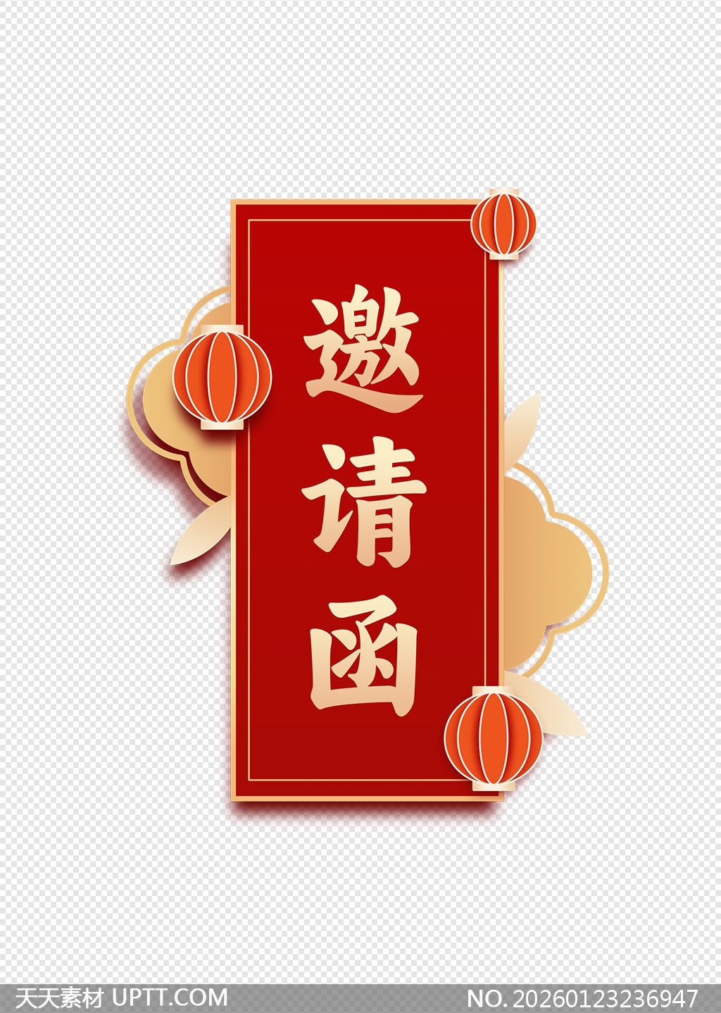 本作品以经典中国红为主色调,搭配金色祥云与立体纸艺灯笼元素,营造出浓郁的传统喜庆氛围;竖版构图简洁大气,“邀请函”三字采用书法字体设计,兼具庄重与雅致;整体风格融合现代剪纸工艺与传统纹样,适用于春节庆典、婚礼请柬、开业典礼、寿宴及各类中式文化活动的视觉设计,可直接用于海报、电子邀请卡、展板或PPT封面等场景,提升活动仪式感与文化辨识度。【 素材唯一编号 20260123236947 】,喜庆类红色风格PSD格式素材下载,文件格式为.PSD,下载完成后的文件为一个压缩包,素材压缩包大小2.96 MB,请解压后用相应软件打开。