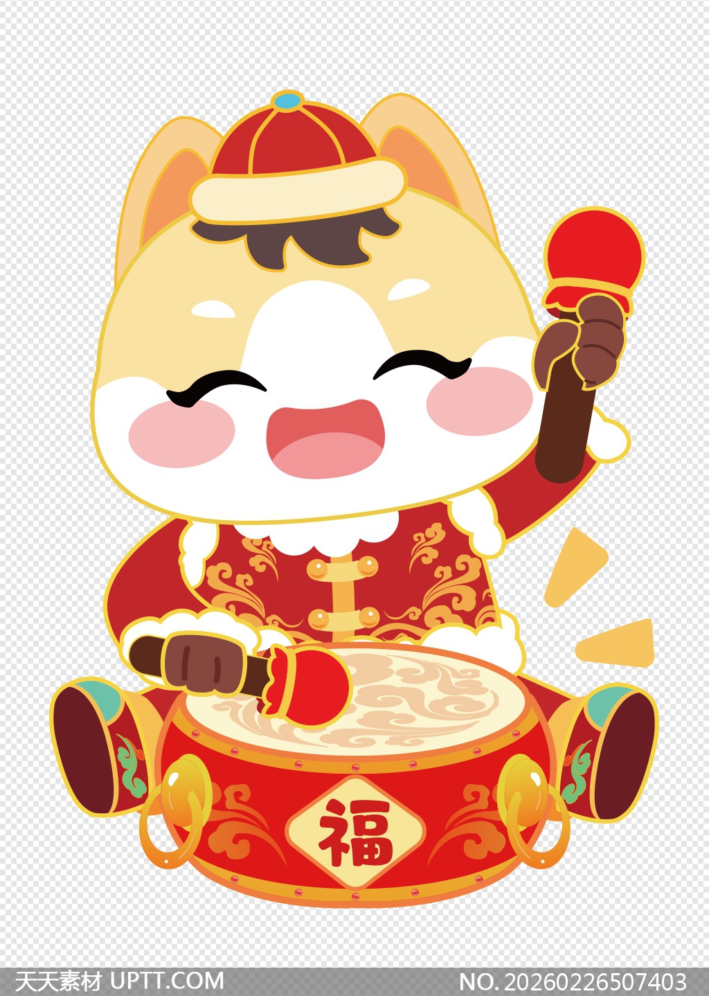 该作品以可爱萌趣的卡通马形象为核心,身着传统红色唐装、头戴官帽,正欢快敲击饰有“福”字的喜庆大鼓,表情生动饱满、动作富有节奏感,整体采用鲜明红金配色与祥云纹样点缀,洋溢浓厚年节氛围;适用于春节贺卡、海报、H5页面、短视频封面、文创产品包装及PPT节日主题页等场景,既传递吉祥祝福又具强视觉吸引力,是营造喜庆团圆氛围的理想装饰元素。【 素材唯一编号 20260226507403 】,喜庆类红色风格AI格式素材下载,文件格式为.AI,下载完成后的文件为一个压缩包,素材压缩包大小1.01 MB,请解压后用相应软件打开。