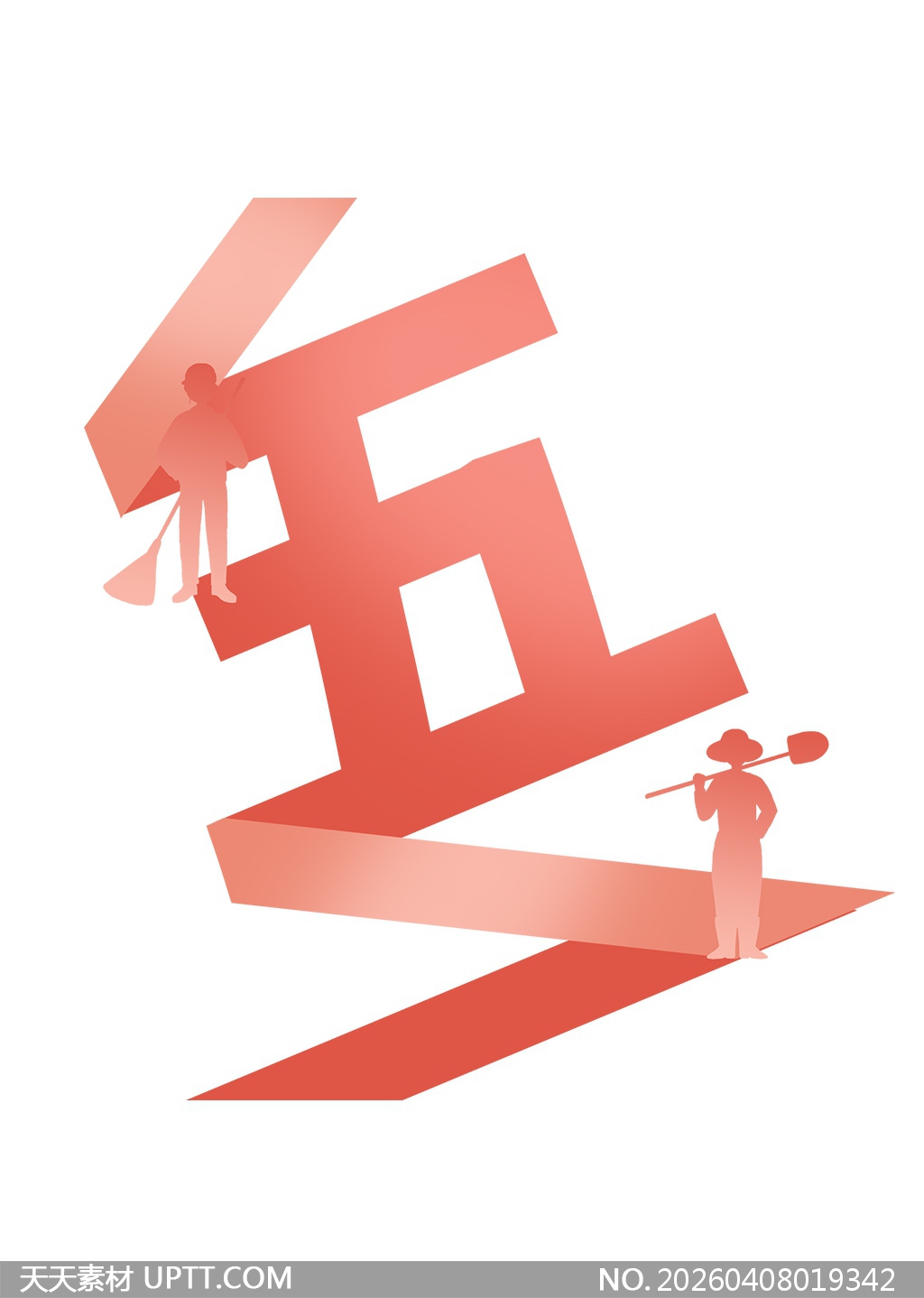 本设计以“五一”二字为视觉核心,采用立体折纸风格呈现鲜明红色渐变,巧妙融入工人持扫帚、农民扛锄头的剪影形象,人物与字体结构自然融合,既体现劳动者的朴实形象又强化节日主题;整体构图简洁有力、层次丰富,适用于五一劳动节宣传海报、企业表彰展板、校园主题活动PPT封面及社交媒体推文配图等场景,兼具艺术性与传播力,可快速提升设计感染力与节日氛围感。【 素材唯一编号 20260408019342 】,党建类红色风格PSD格式素材下载,文件格式为.PSD,下载完成后的文件为一个压缩包,素材压缩包大小4.32 MB,请解压后用相应软件打开。
